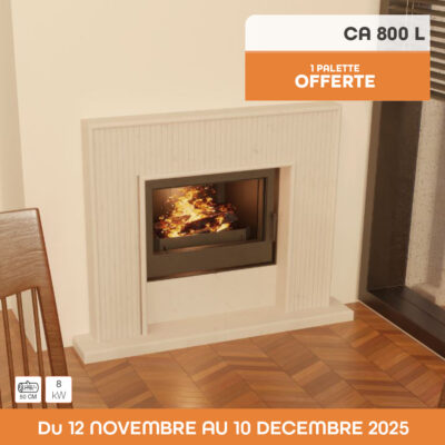 (*) Jusqu'Ă 2 palettes de combustibles offertertes du 12/11 au 10/12/2025 sur toute commande «posĂ©e» d'un poĂȘle ou d'un insert Chazelles (hors accessoires et pose) sur la sĂ©lection prospectus (voir liste en magasin et sur www.chazelles.com). Non cumulable avec dâautres offres promotionnelles en cours. Dans les magasins participants. 5,5 % TVA rĂ©duite : un taux de 5.5% a Ă©tĂ© mis en place pour les travaux de rĂ©novation Ă©nergĂ©tique. Pose, Installation et Entretien de matĂ©riaux et Ă©quipement dâĂ©conomie dâĂ©nergie ou de production dâĂ©nergie renouvelable. Pour les logements dâhabitation ancienne de plus de 2 ans (en rĂ©sidence principale); propriĂ©taire, locataire ou simple occupant (syndicat de copropriĂ©tĂ© inclus). Produits Ă©ligibles à «Ma Prime RĂ©nov» : Selon conditions prĂ©vues par la loi de finance. Plus dâinfo : www.ademe.fr. Voir liste sur : www.chazelles.com. - Photos et document non contractuelles.